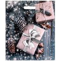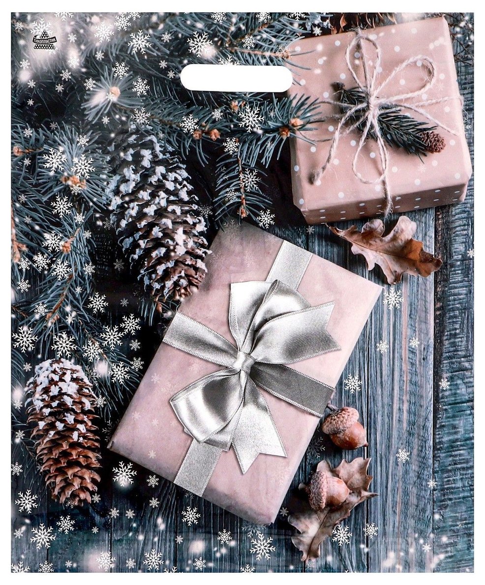 Новогодний пакет с принтом в виде подарков и вырубной ручкой (45х38 см)
