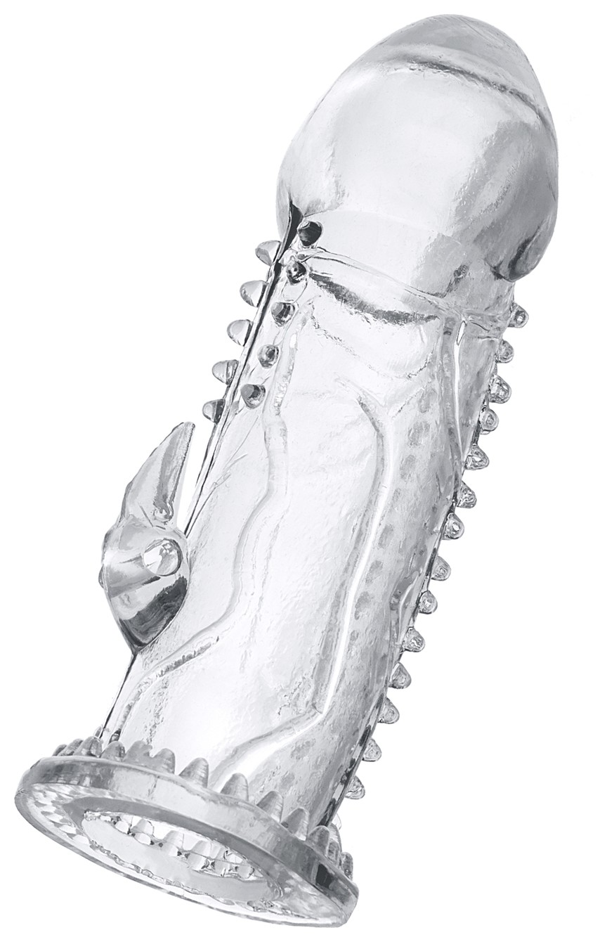 Прозрачная насадка на пенис с шипиками и коготком - 13,5 см