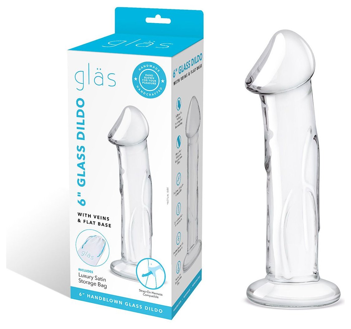 Прозрачный стеклянный фаллоимитатор 6’’ Glass Dildo With Veins Flat Base - 15,2 см