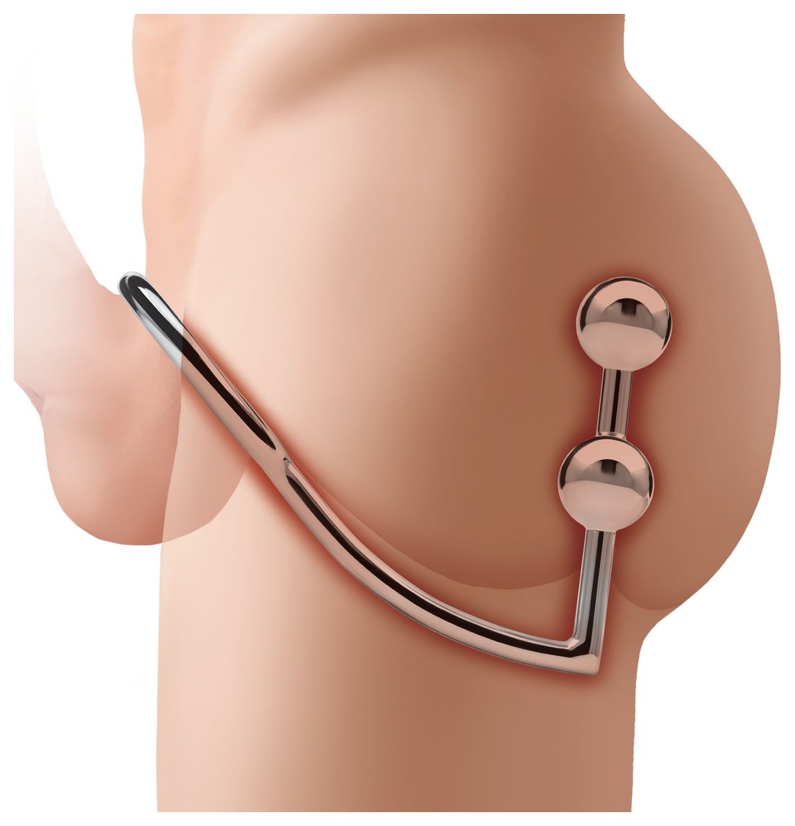 Кольцо на пенис с анальным стимулятором Two Bead Stainless Steel Anal Hook Cock Ring