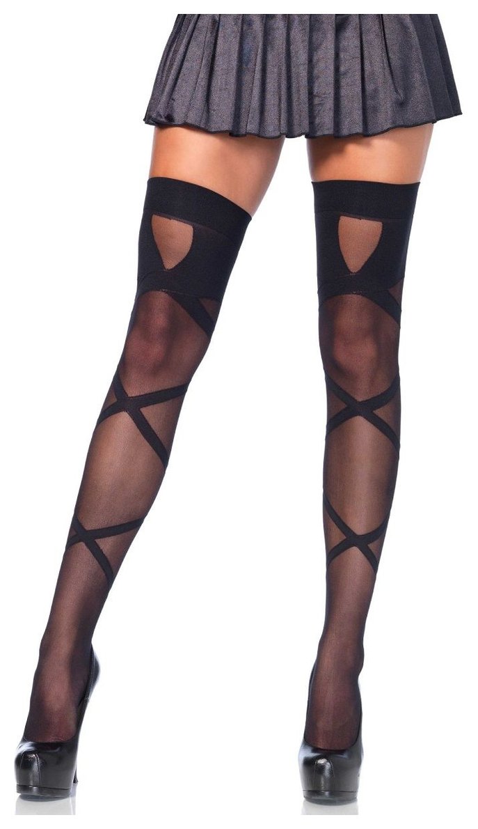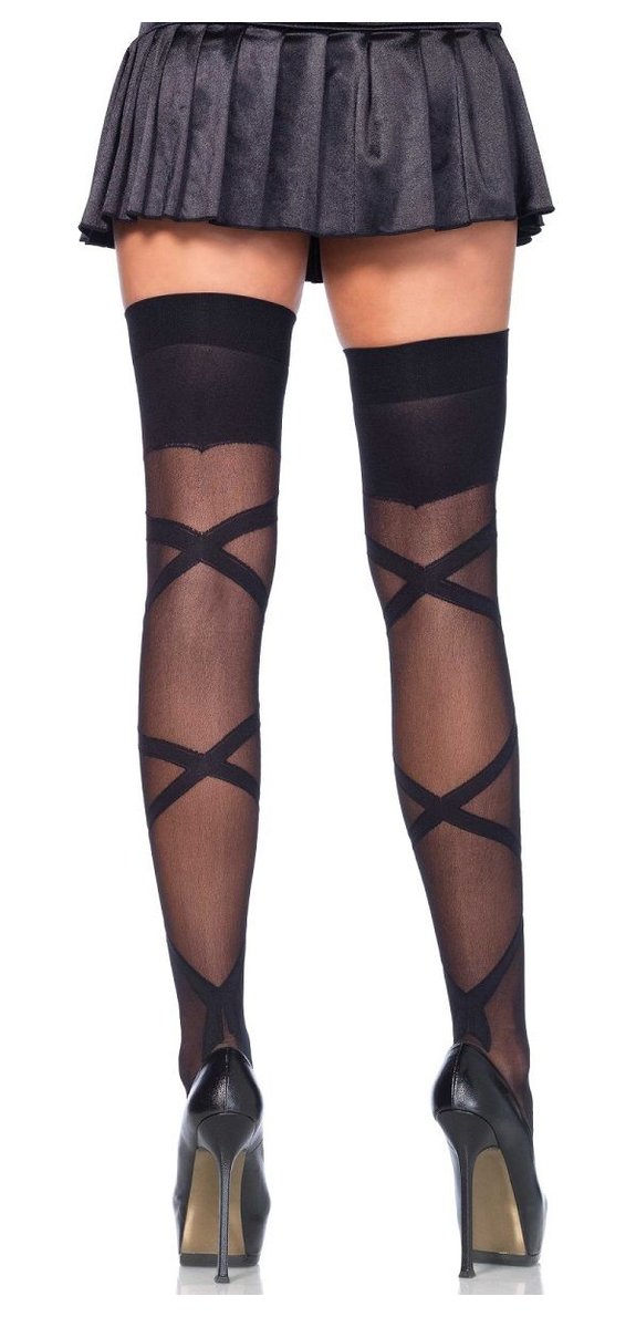 Прозрачные чулочки с полосками, переплетенными крест-накрест.