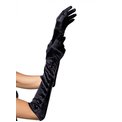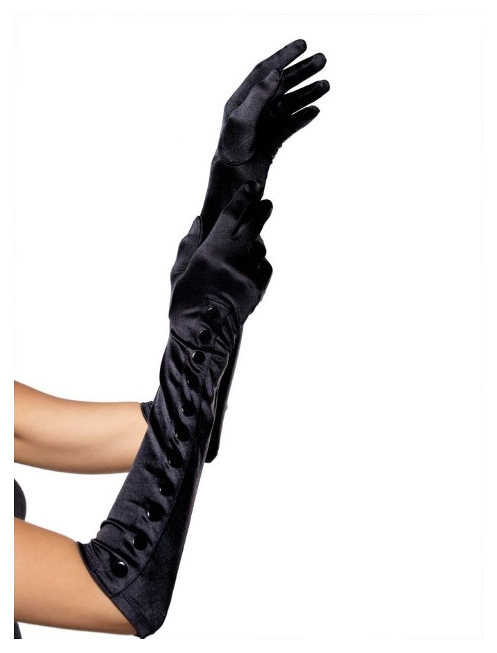 Длинные атласные перчатки черного цвета на кнопочках.