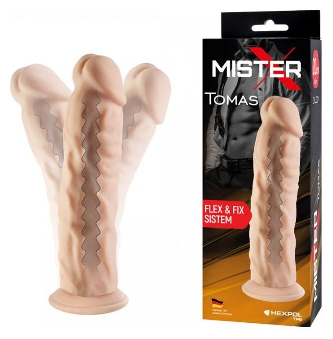 Телесный фаллоимитатор на присоске с гибким хребтом Tomas