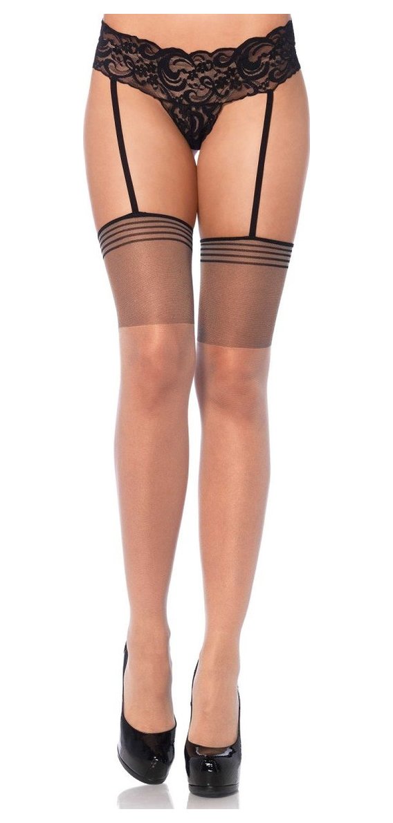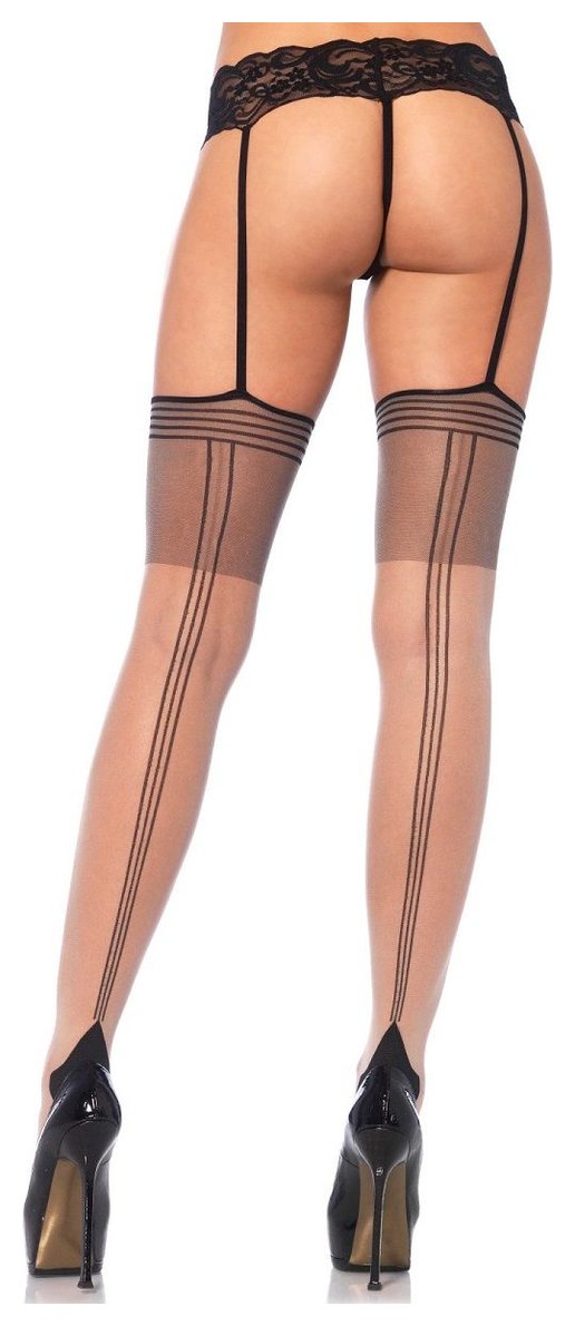 Соблазнительная модель чулочков с полосками по кромке чулка и сзади. Соединены со стрингами из кружева.