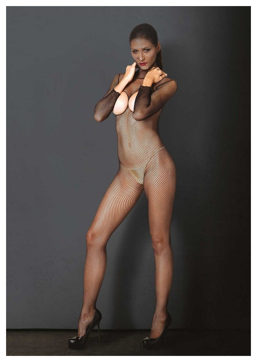 Чулок-сетка на все тело с вырезами HOODED FISHNET BODYSTOCKING