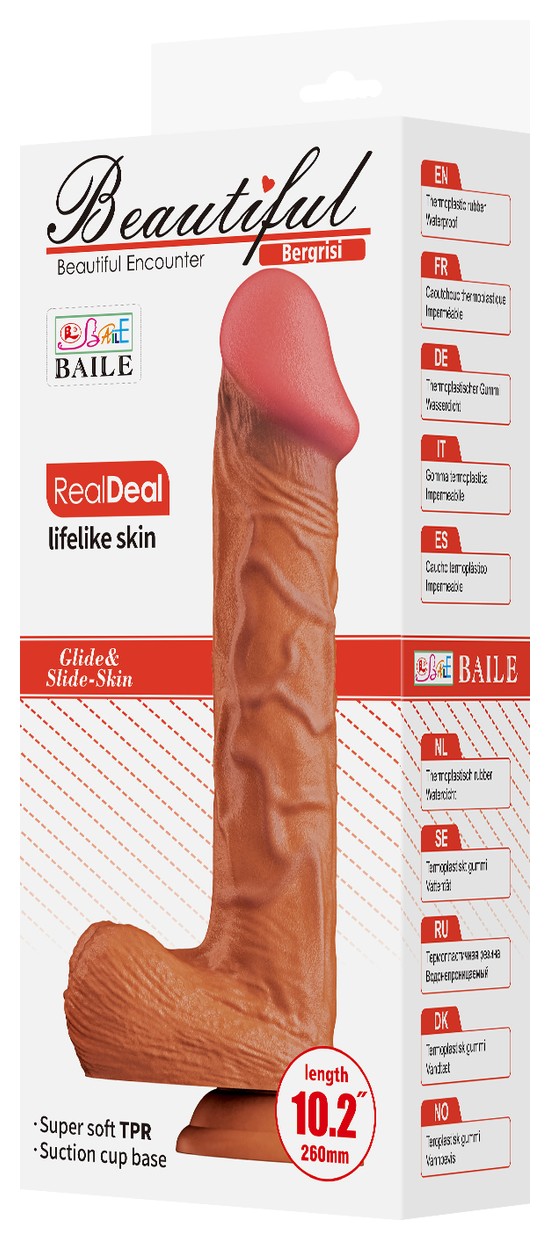 Большой фаллоимитатор в реалистичной форме пениса на присоске. Имеет выпуклую головку, вены на стволе и гладкая мошонка. Рабочая длина - 19 см.