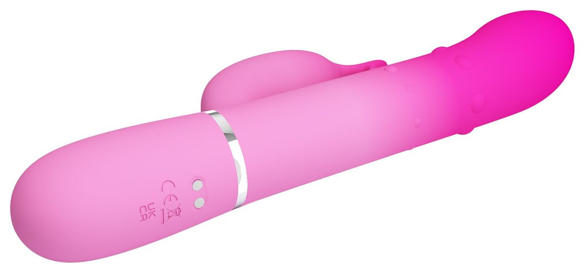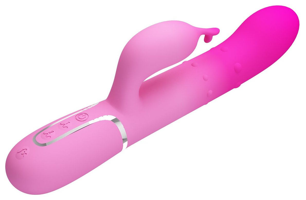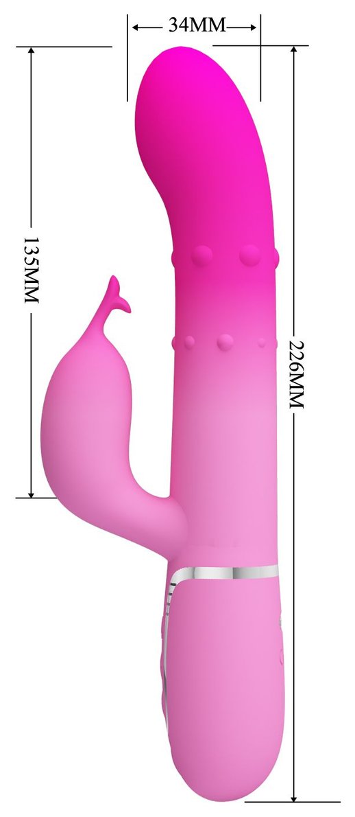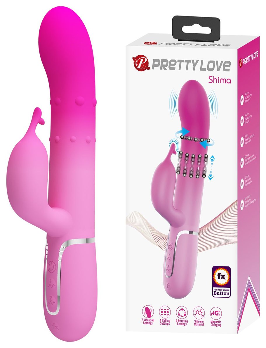 Розовый вибратор-кролик с вращающимися бусинами Shima - 22,6 см