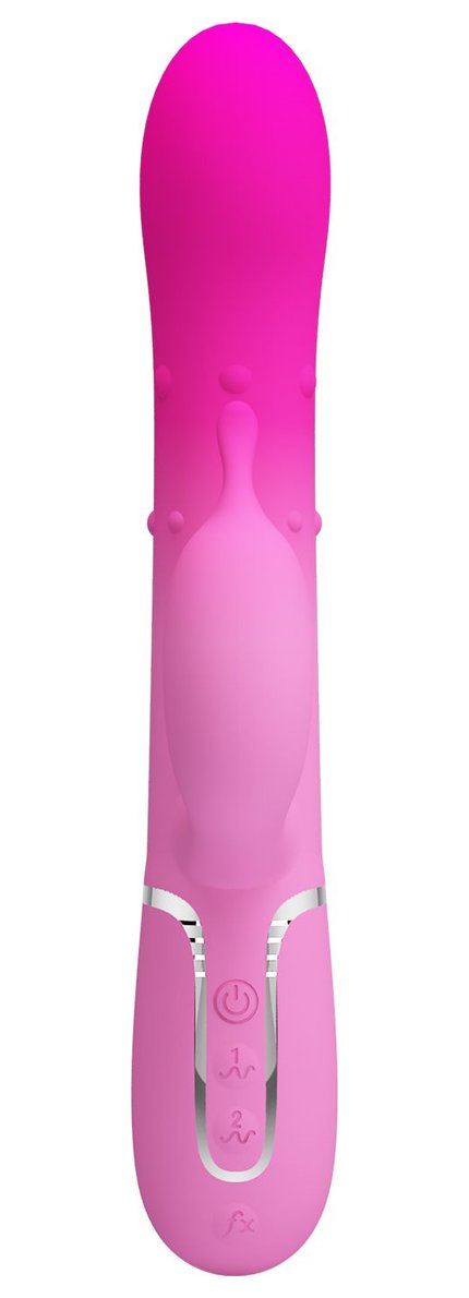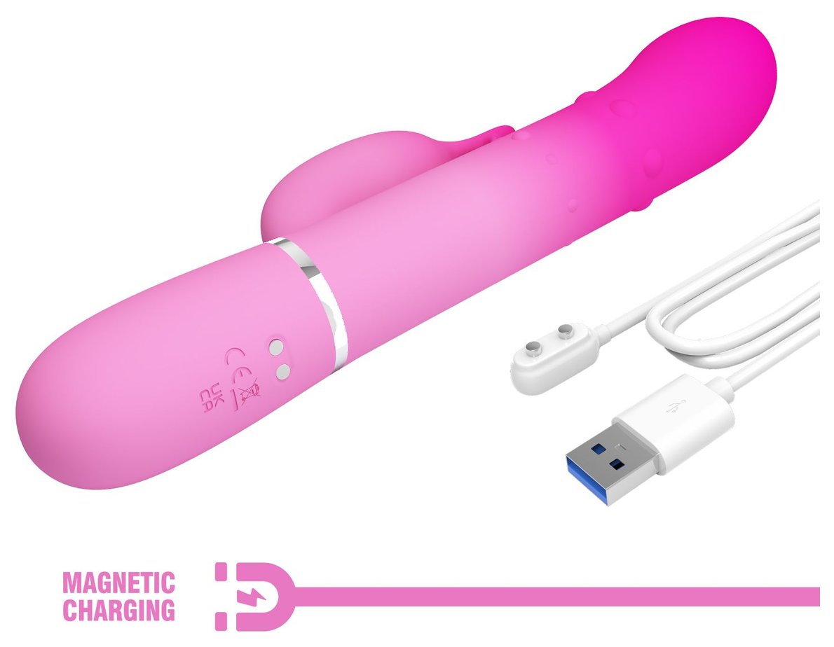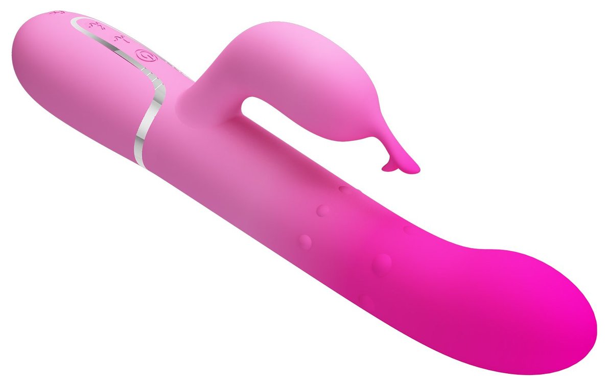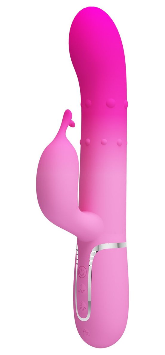 Розовый вибратор-кролик с вращающимися бусинами Shima - 22,6 см