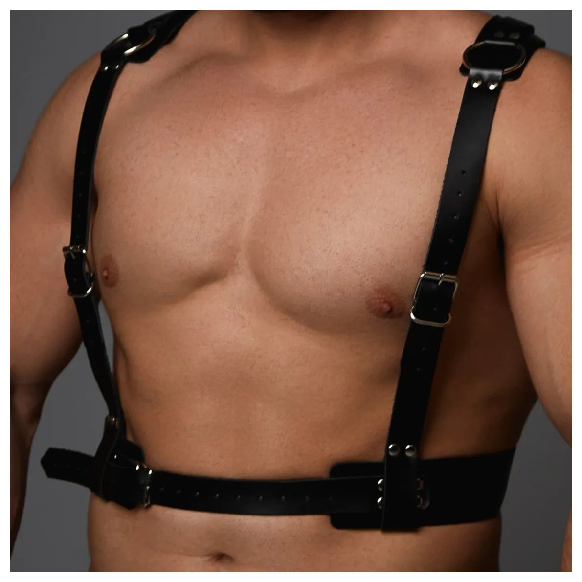 Черная кожаная мужская портупея с регулируемыми ремешками