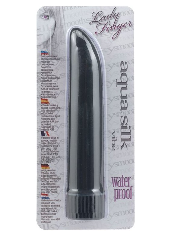 Чёрный классический вибратор AQUA SILK LADYFINGER BLACK. Мультискоростная вибрация.