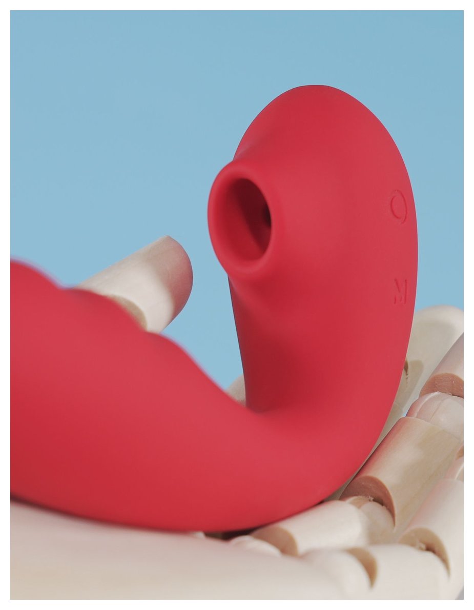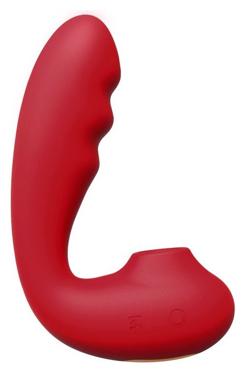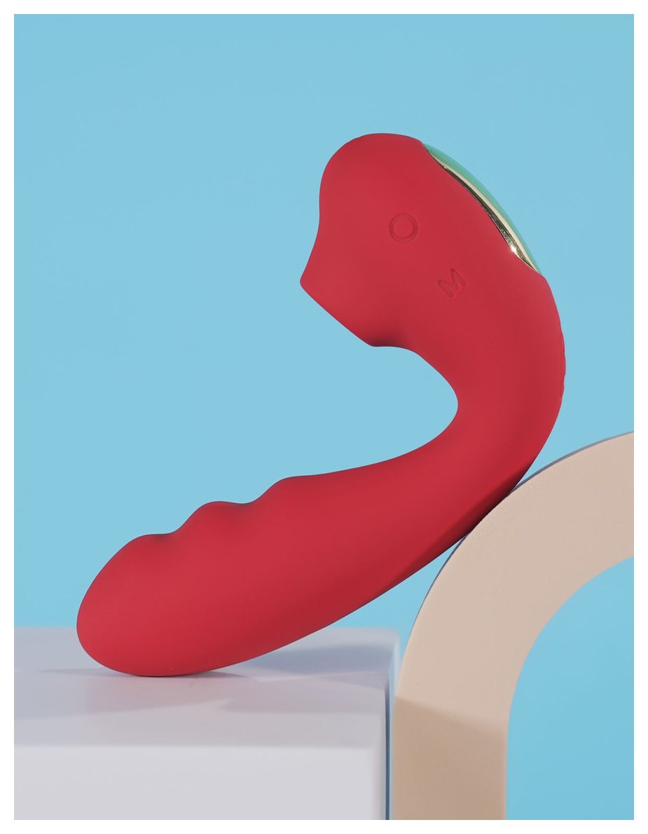 Красный вибратор с вакуумной стимуляцией и нагревом Tara