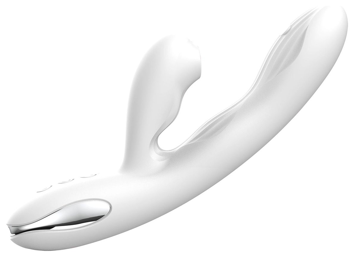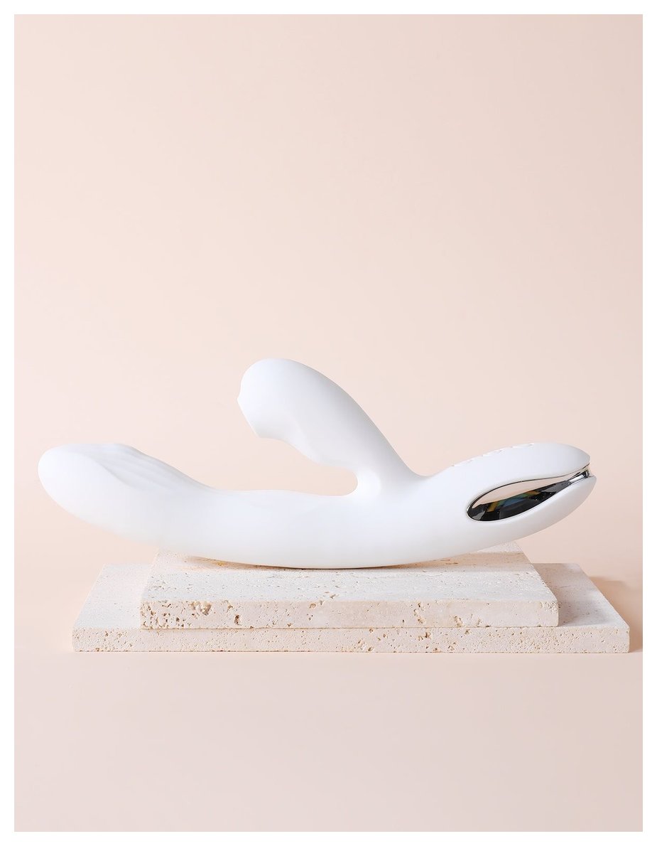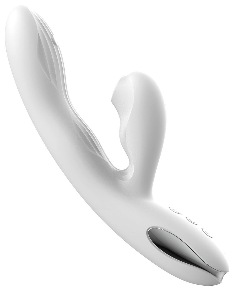 Белый вибратор-кролик Eria с вакуумной стимуляцией, функцией tapping и нагревом - 21,5 см