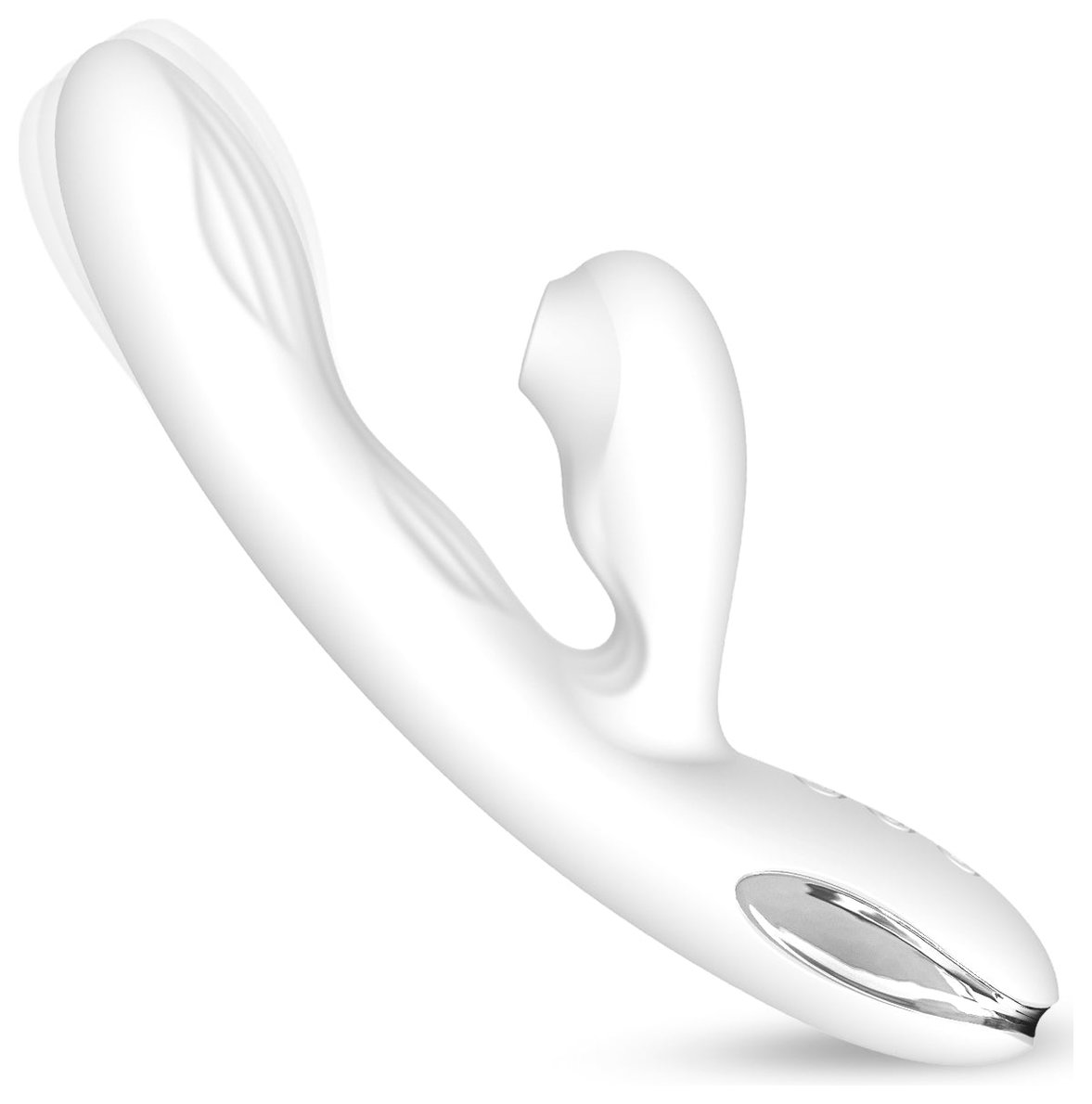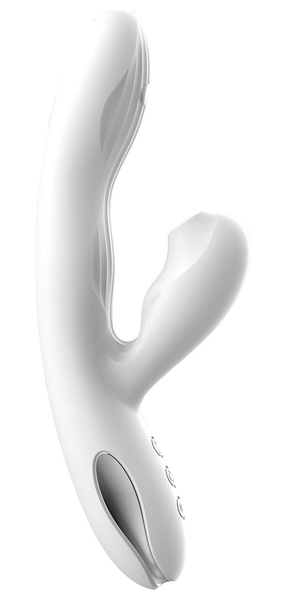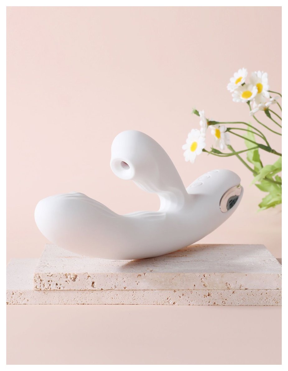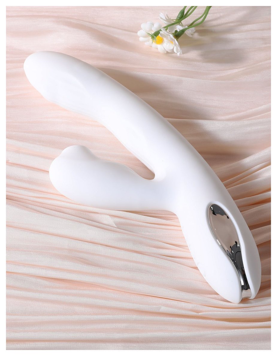 Белый вибратор-кролик Eria с вакуумной стимуляцией, функцией tapping и нагревом - 21,5 см