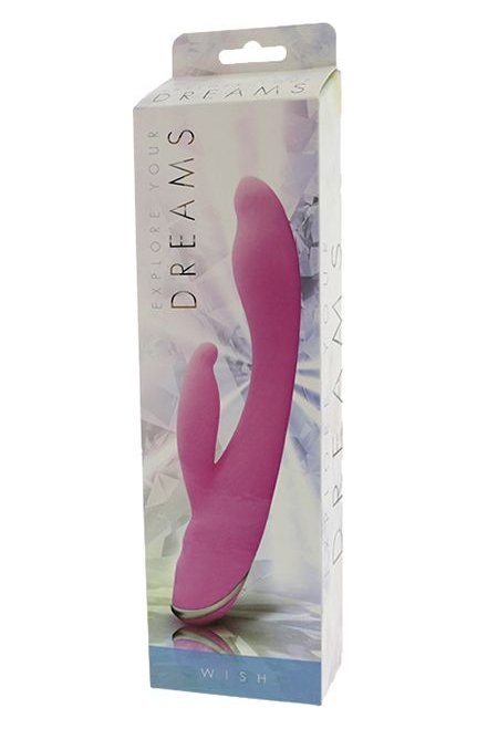 Розовый вибратор с клиторальным отростком EXPLORE YOUR DREAMS WISH. Водонепроницаемый. 7 режимов вибрации.