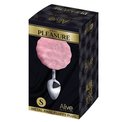 Серебристая анальная втулка с розовым хвостиком Alive Metal Anal Fluffly Plug S