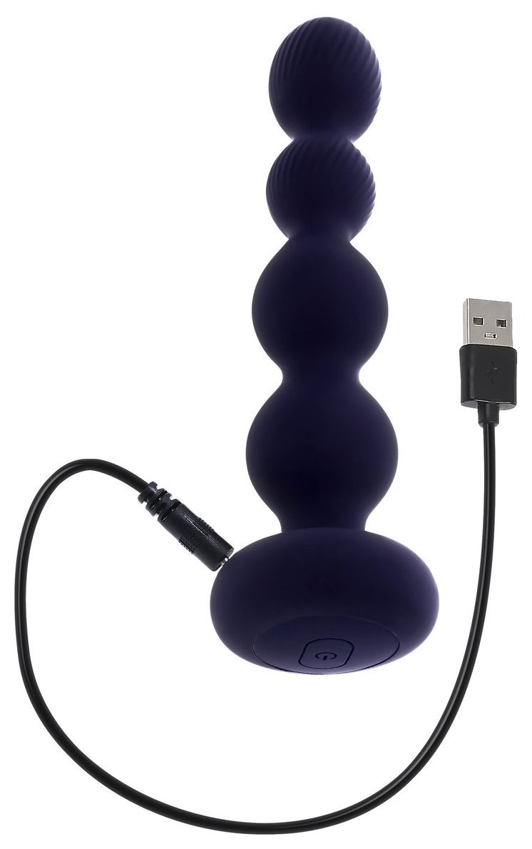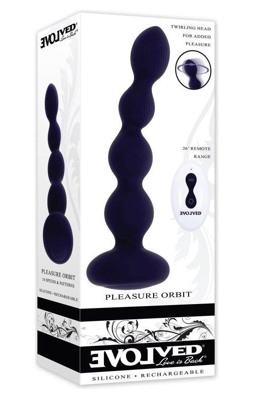 Фиолетовые анальные бусы с вибрацией и вращением Pleasure Orbit - 17,8 см