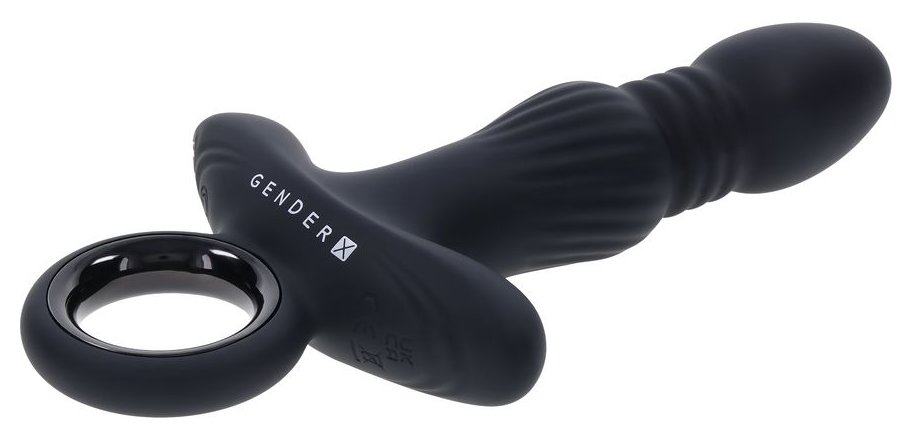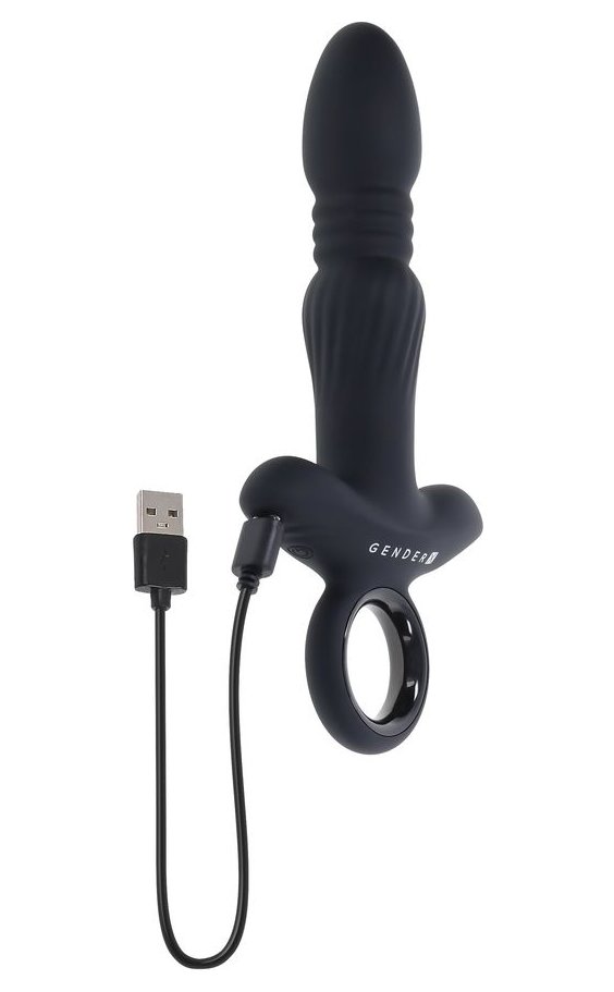 Черный анальный вибростимулятор с поступательными движениями Slayer - 20 см
