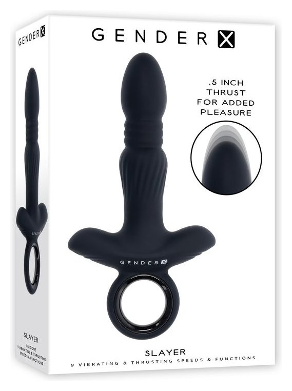 Slayer — это внушительный анальный вибратор с функцией толчков, созданный для тех, кто ценит интенсивные ощущения. Его гладкий яйцевидный наконечник плавно сужается к гибкой гармошке на шее, которая обеспечивает реалистичные толчки, а затем расширяется к текстурированному нижнему стержню. Широкое основание и удобное кольцо делают управление легким и интуитивно понятным. 9 режимов вибрации и толчков. Амплитуда толчков 1.27 см для максимального удовольствия. Рабочая длина -- 12,7 см.