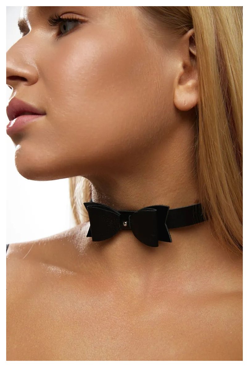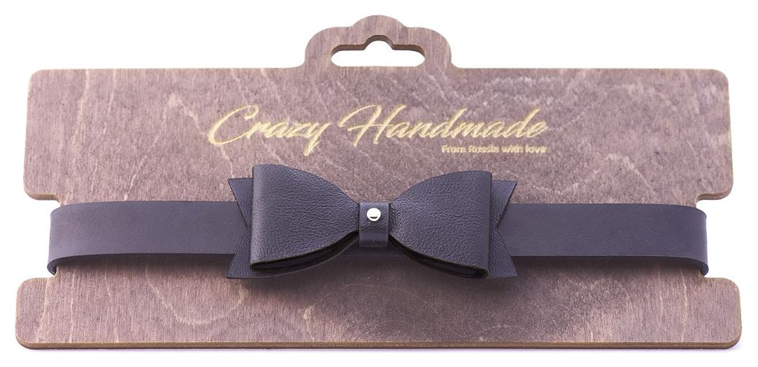 Однослойный чокер из натуральной кожи. Декорирован трехслойным кожаным элементом в виде галстука-бабочки, прочно закрепленным на чокере. Ширина основы - 3 см. Обхват - 32-40 см.
