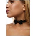 Черный кожаный однослойный чокер с бабочкой