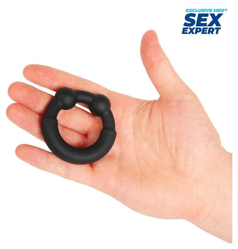 Эрекционное кольцо для полового члена. Усиливает эрекцию, повышает чувствительность, продлевает интимную близость. С одной стороны интимный аксессуар имеет жёсткую внутреннюю вставку в виде дуги, с другой - две твёрдые вставки – шарика. Секс-игрушка изготовлена из очень мягкого материала. Хорошо растягивается. Подходит для пенисов разных размеров. Внутренний диаметр - 3,3 см.