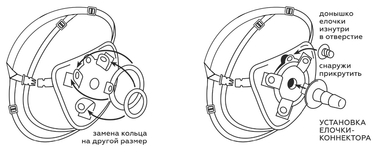 Пояс состоит из передней части в виде треугольника, на котором устанавливаются 2 типа коннекторов (фиксаторов). Один фиксатор в виде кольца. Другой - в виде пластикового штырька, раскручивающегося на две детали. Одна деталь сделана в виде шайбы и резьбового соединения, другая – в виде «елочки» цилиндрической формы. В поясе есть кармашек с кнопкой и отверстие, в которое помещается деталь в виде шайбы, резьбой в отверстие. Затем с внешней стороны прикручивается вторая деталь «штырек - елочка». На поясе есть два пришитых узла для прикрепления ремней и их регулировки по длине и натяжению. С одной из сторон имеется фастекс, выполняющий роль пряжки и позволяющий расстегивать и застегивать пояс без регулировки при следующем надевании. Снимая пояс, можно просто расстегнуть пряжку фастекса и все. Регулировки сохранятся.