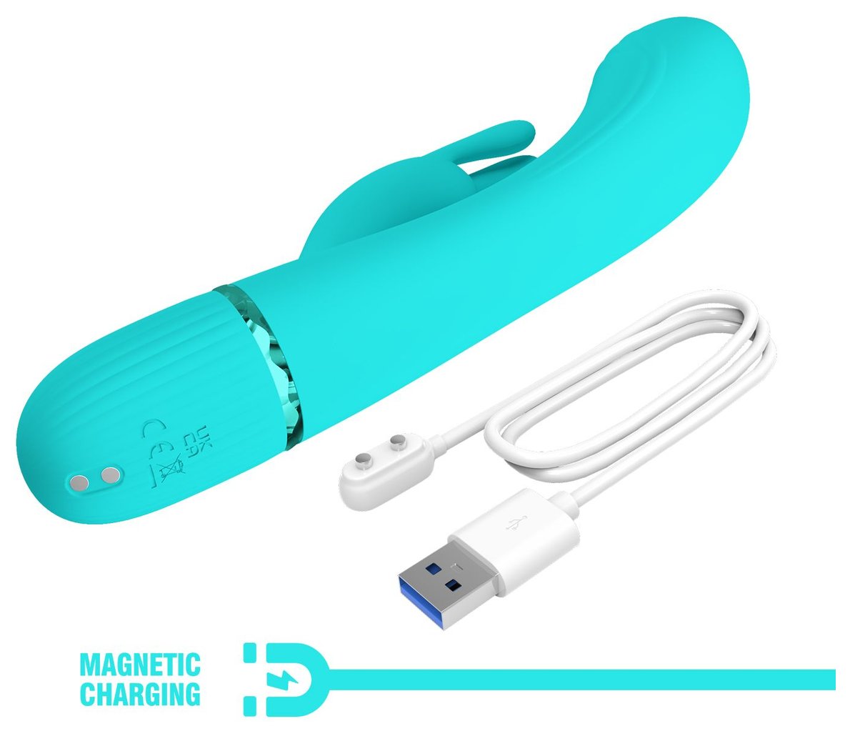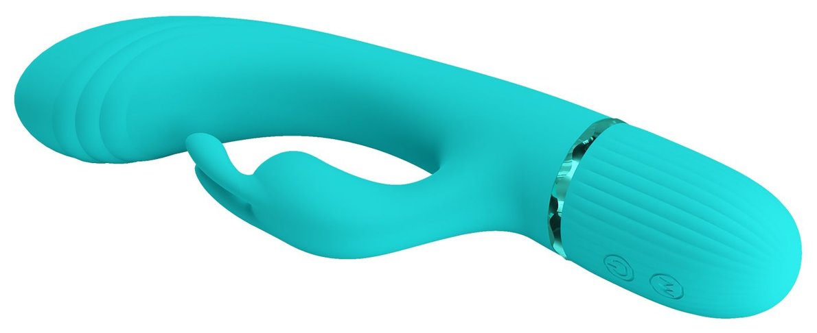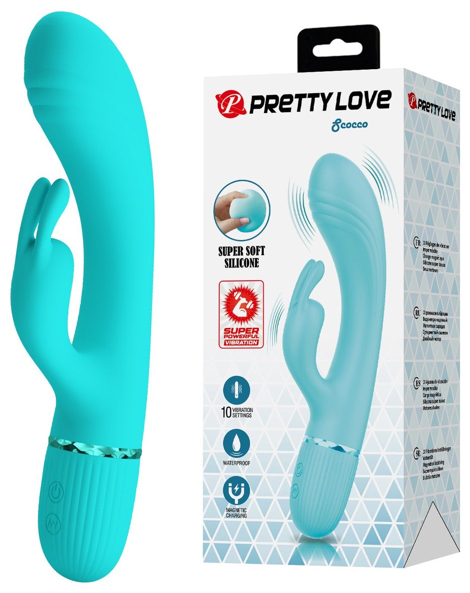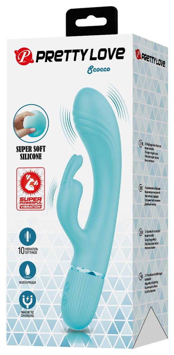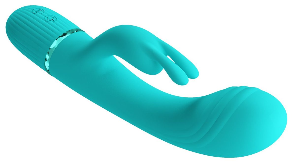 Аквамариновый вибратор-кролик Scocco - 20 см