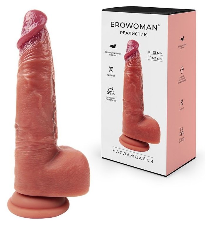 Роскошный фаллоимитатор для разнообразных эротических удовольствий. Форма в виде пениса, естественный оттенок поверхности, ярко выраженные венки и складочки, хорошо очерченные головка и мошонка придают секс-игрушке максимальной реалистичности. Плотный ствол позволяет использовать интимный аксессуар в различных позах. Присоска надёжно удерживает изделие на ровной горизонтальной или вертикальной поверхности. Фаллоимитатор выполнен из приятного на ощупь материала. Прост в использовании и уходе. Рабочая длина - 14 см.