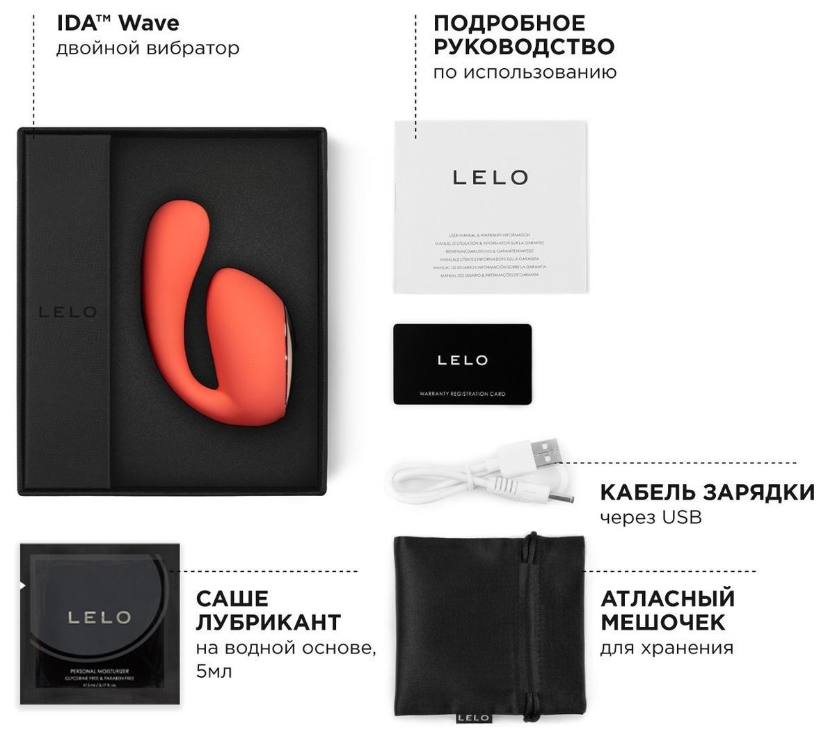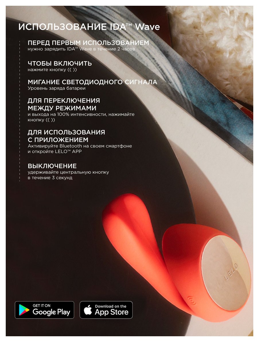 Новейший двойной вибратор IDA Wave, подключаемый к приложению, с запатентованной технологией LELO WaveMotion становится символом наслаждения, которое никогда не разочаровывает и идеально подходит для сексуального пробуждения на ваших условиях! Позвольте IDA Wave стимулировать все ваши точки с двумя мощными двигателями, неустанно работающими для стимуляции клитора и точки G. Не торопитесь, подключите приложение, чтобы изучить больше вибрирующих моделей, и наслаждайтесь обновленным дизайном, который подходит для всех форм и размеров для идеальной подгонки. Или, возможно, поиграйте со своим партнером и погрузитесь в невероятную стимуляцию без помощи рук. IDA Wave — это подключаемый к приложению двойной вибратор с двумя отдельными моторами, созданный для тех, кто хочет постепенно наращивать свой оргазм. Вращающийся вставляемый хвостик стимулирует точку G с помощью запатентованной технологии WaveMotion, которая имитирует движения пальцев. В то же время больший наконечник приносит к клитору удовлетворяющие вибрации. IDA Wave имеет 4 настройки удовольствия по умолчанию, которые можно настроить до 10 с помощью специального приложения LELO. Чтобы по-настоящему освободить руки, позвольте своему партнеру взять на себя управление устройством Почувствуйте глубокие вибрации как внутри, так и снаружи благодаря двум вибромоторам, работающим в тандеме, для двойного удовольствия. Характеристики: -