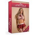 Когда вы последний раз примеряли дерзкий и невинный образ? Костюм школьницы от Le Frivole воплощает это идеально: кружевной топ на косточках подчеркивает грудь, добавляя соблазнительности, а короткая юбка-пояс с подтяжками для чулок привносит игривую дерзость, открывая пространство для фантазий. И, конечно, воротник с галстуком — финальный штрих, который завершает этот образ и добавляет характер. В комплекте: топ, юбка, чулки, галстук.
