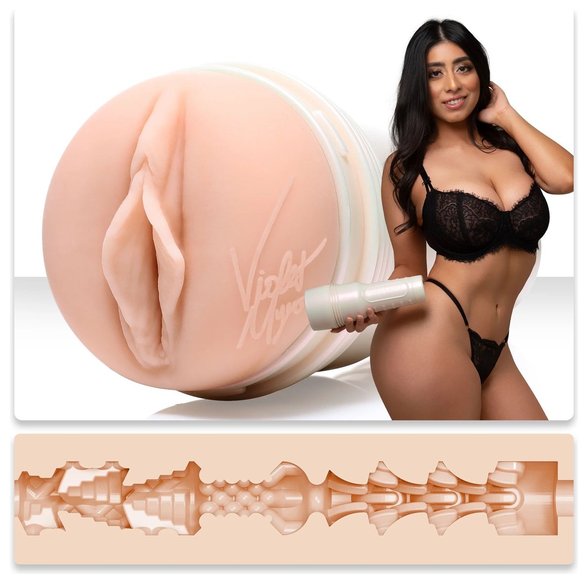 Ручной мастурбатор Violet Myers Waifu от Fleshlight выполнен в классическом виде факела. Серия секс-игрушек для мужчин от этого бренда передает реалистичные формы интимных органов звезд из сферы эротики. Данный мастурбатор – это точная копия вагины звезды Вайолет Майерс. Он изготовлен из материала Суперскин, который максимально приближен к текстуре настоящей человеческой кожи. Внутренняя поверхность мастурбатора имеет разный диаметр и рисунок для достижения высшей точки удовольствия. Рукав мастурбатора легко вынимается из корпуса для тщательной очистки изделия.
