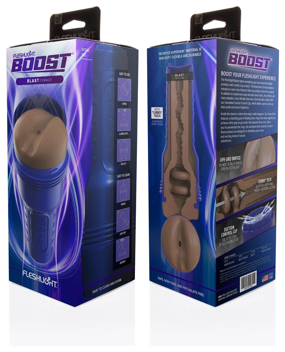 Boost Blast от Fleshlight – это инновационный продукт для соло-игр. Реалистичный внешний вид и уникальный внутренний рельеф обеспечат невероятные ощущения от мастурбации. Рукав оснащен двумя плавающими кольцами Turbo Tech, которые надежно удерживают половой орган внутри и обеспечивают плотный захват по всей длине. После преодоления колец, вас ждет текстурный узкий коридор, который состоит из выпуклостей и ребер. Корпус мастурбатора Fleshlight имеет отверстие для выхода воздуха, благодаря которому вы сможете настроить желаемую герметичность и насладится эффектом вакуума.