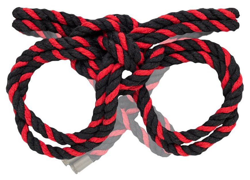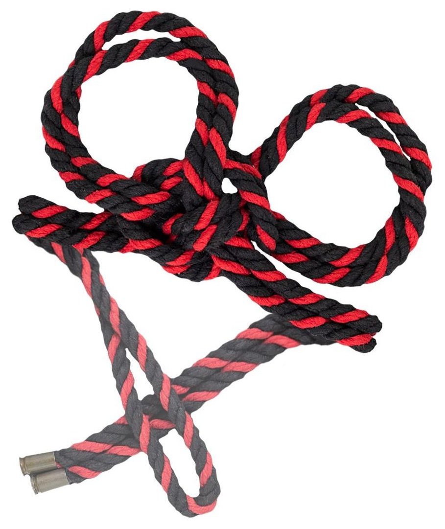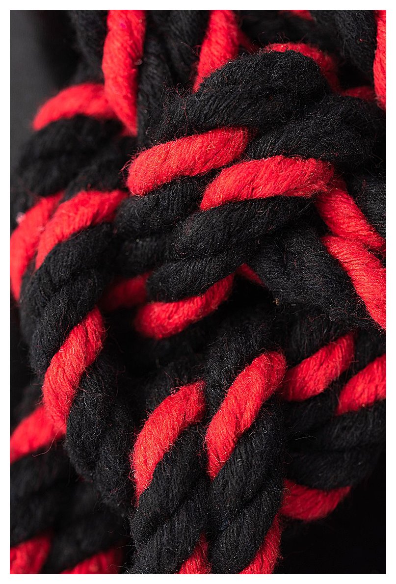 Черно-красные наручники-оковы «Узел-Альфа» из хлопковой веревки