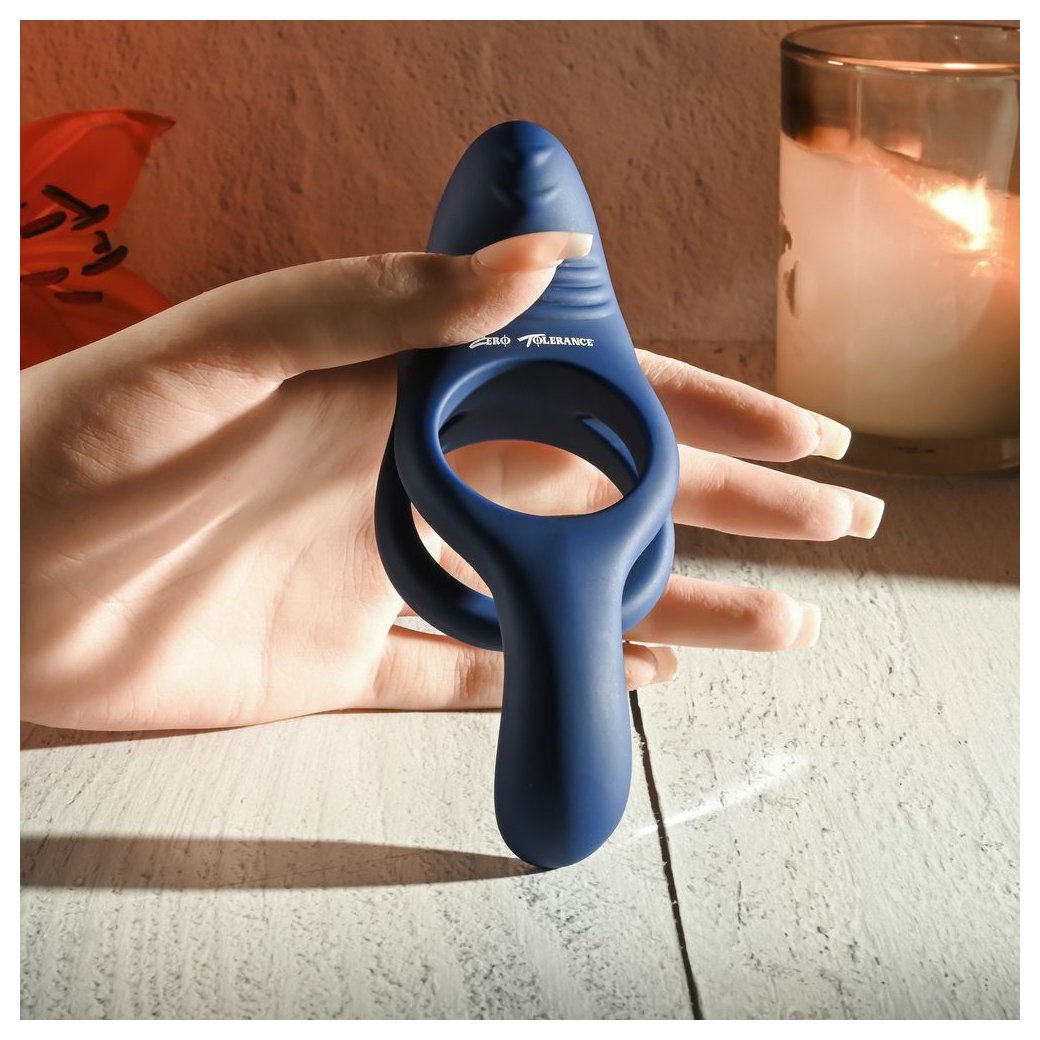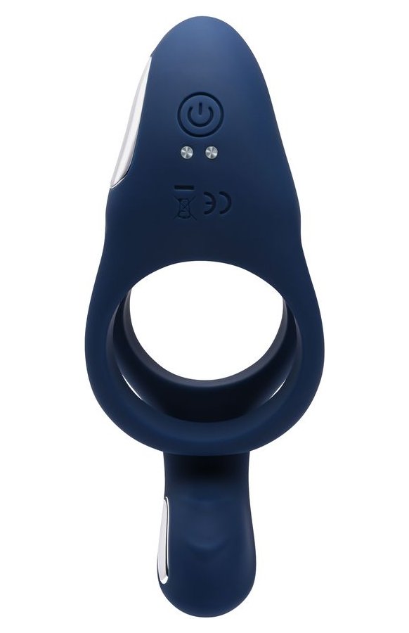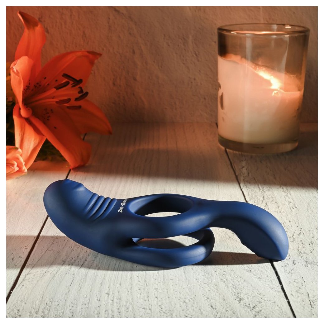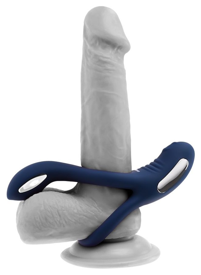 Синее эрекционное виброкольцо с двойным подхватом мошонки Ring Around The Rosy