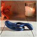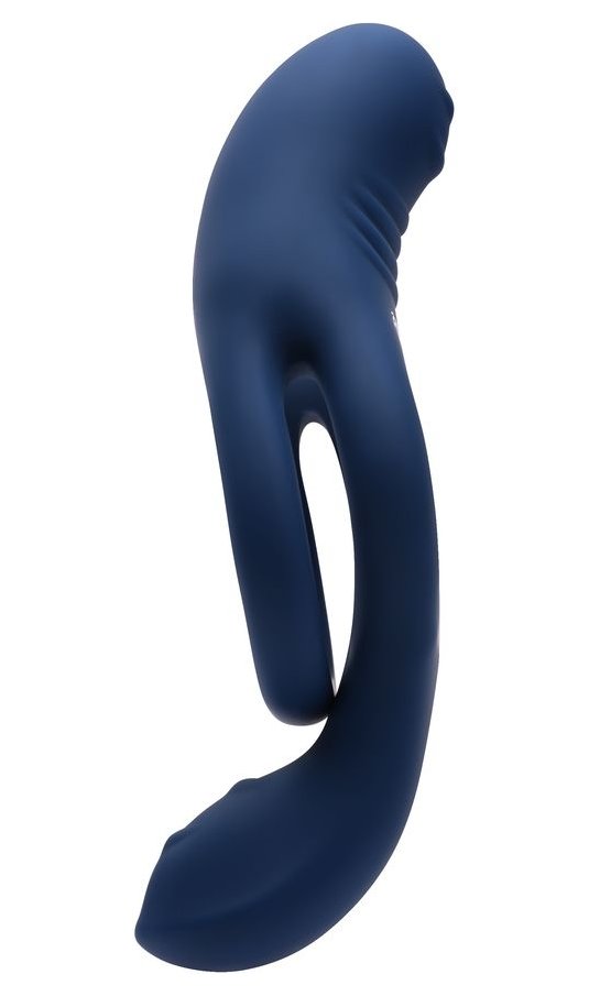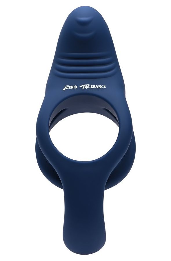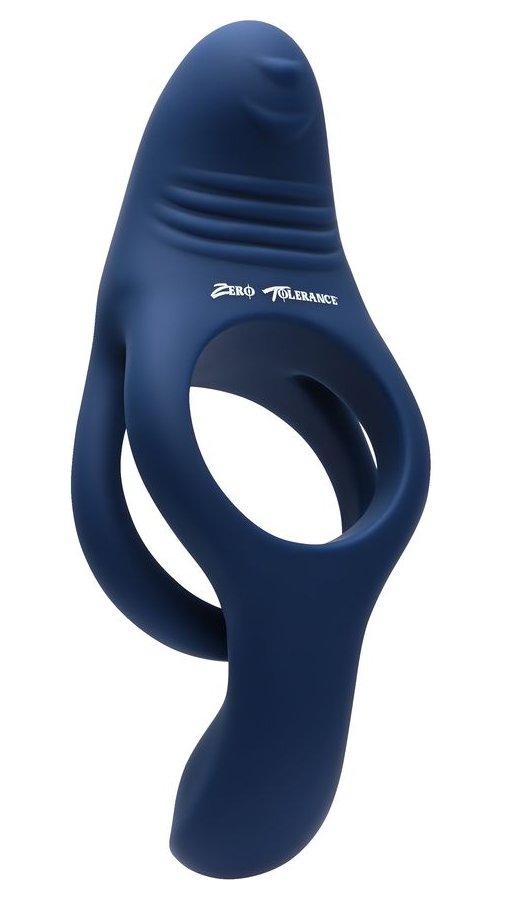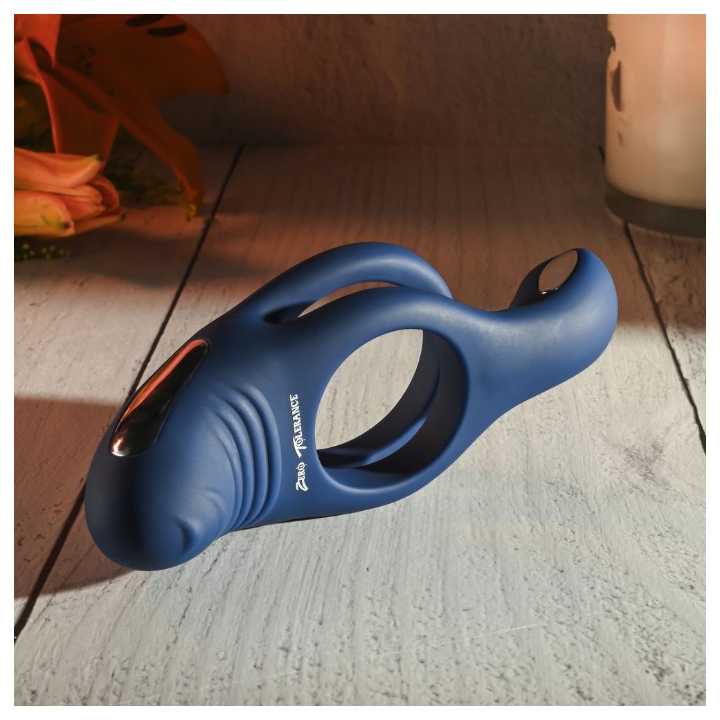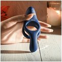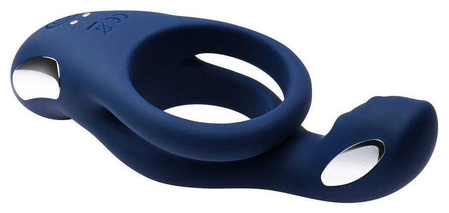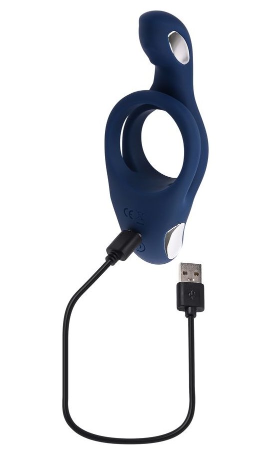 Синее эрекционное виброкольцо с двойным подхватом мошонки Ring Around The Rosy
