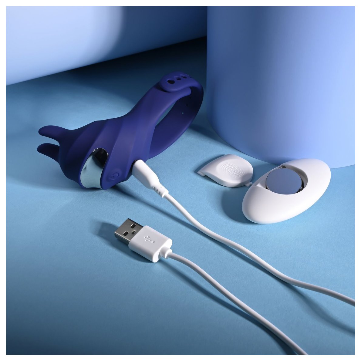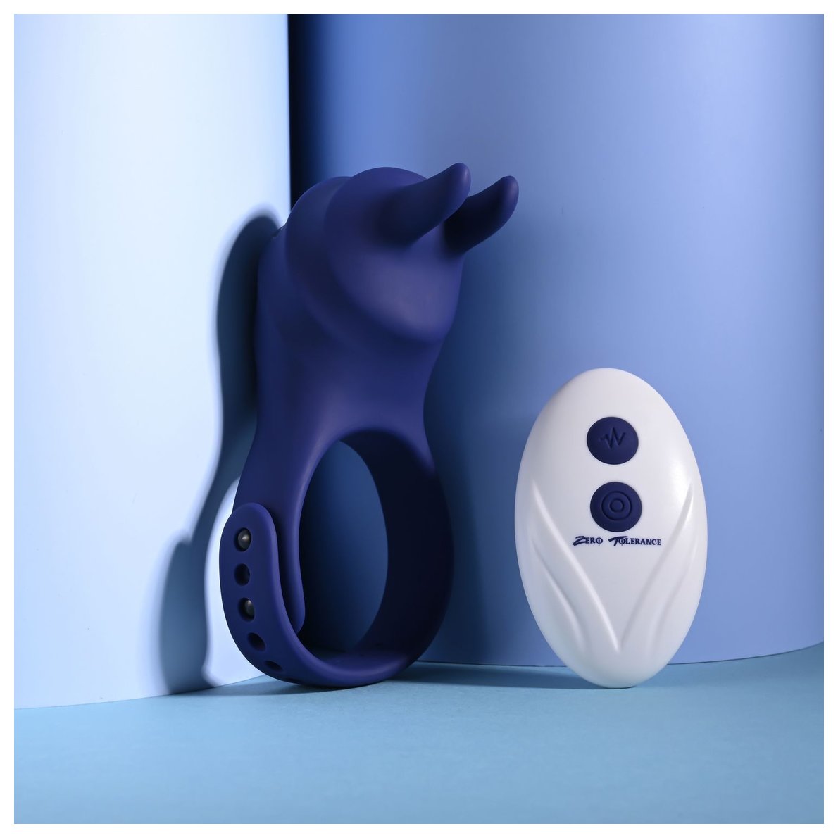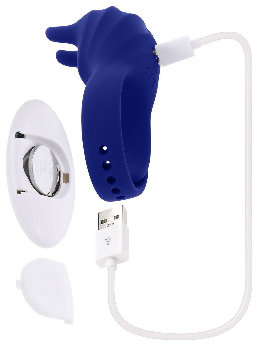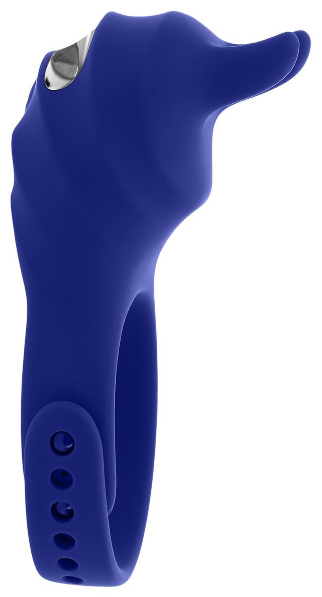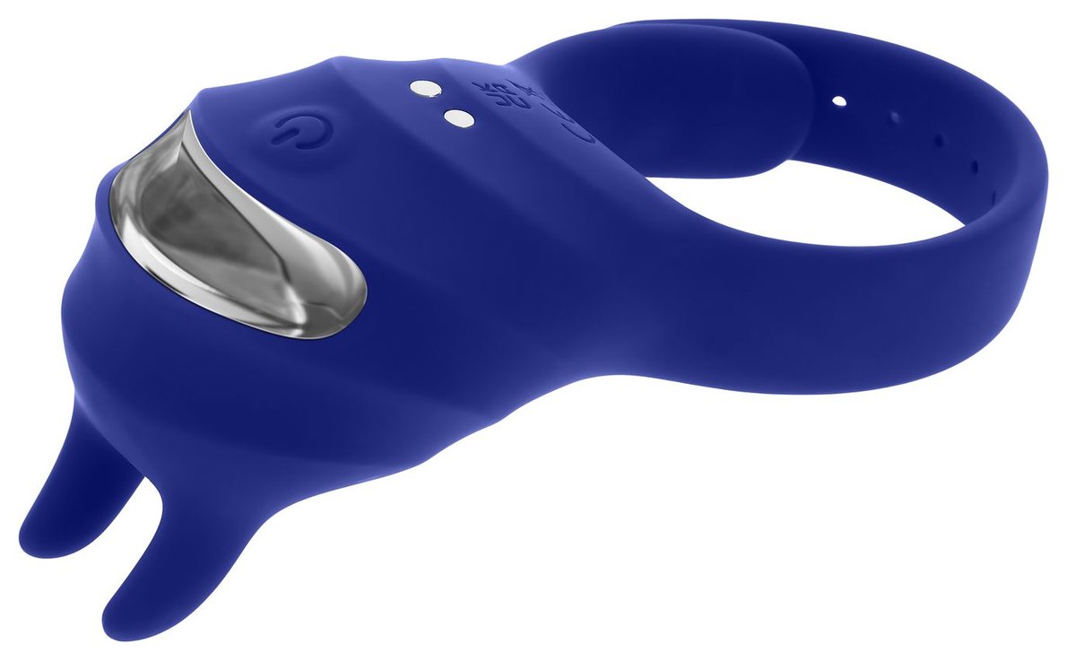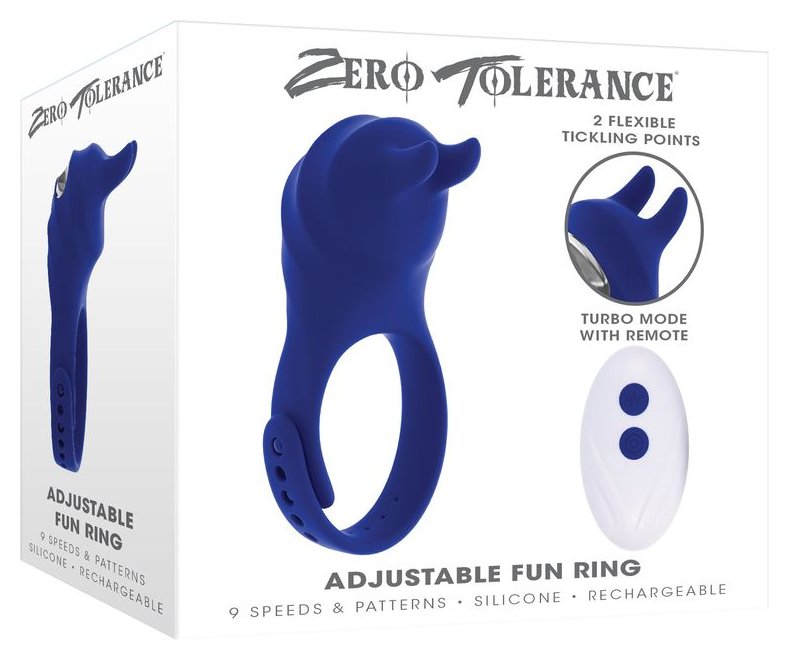 Синее эрекционное виброкольцо с клиторальной подушечкой и пультом ДУ Adjustable Fun Ring