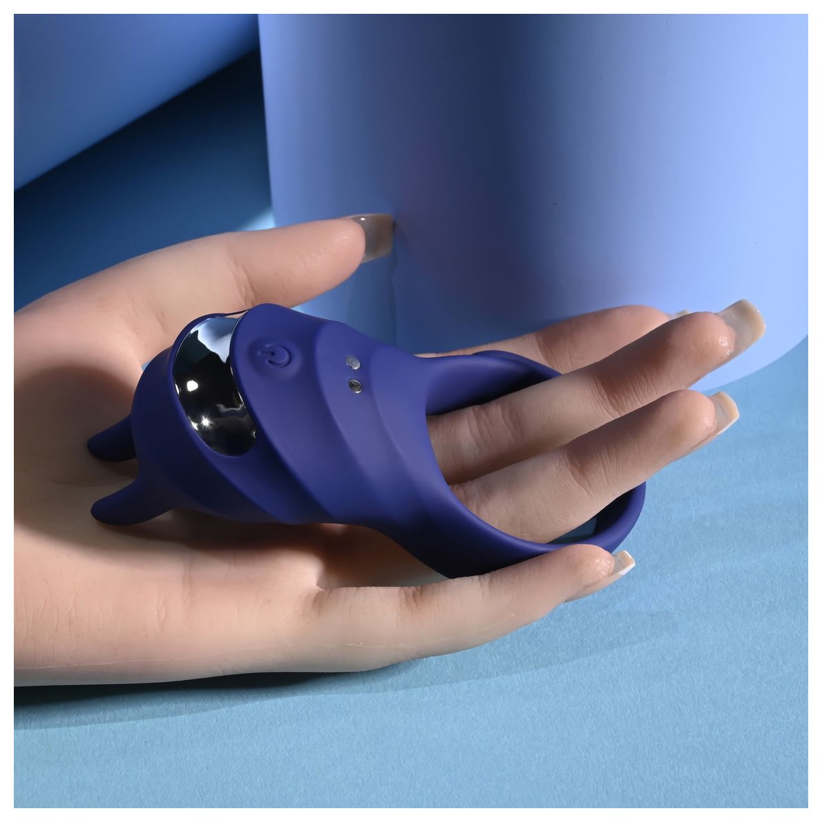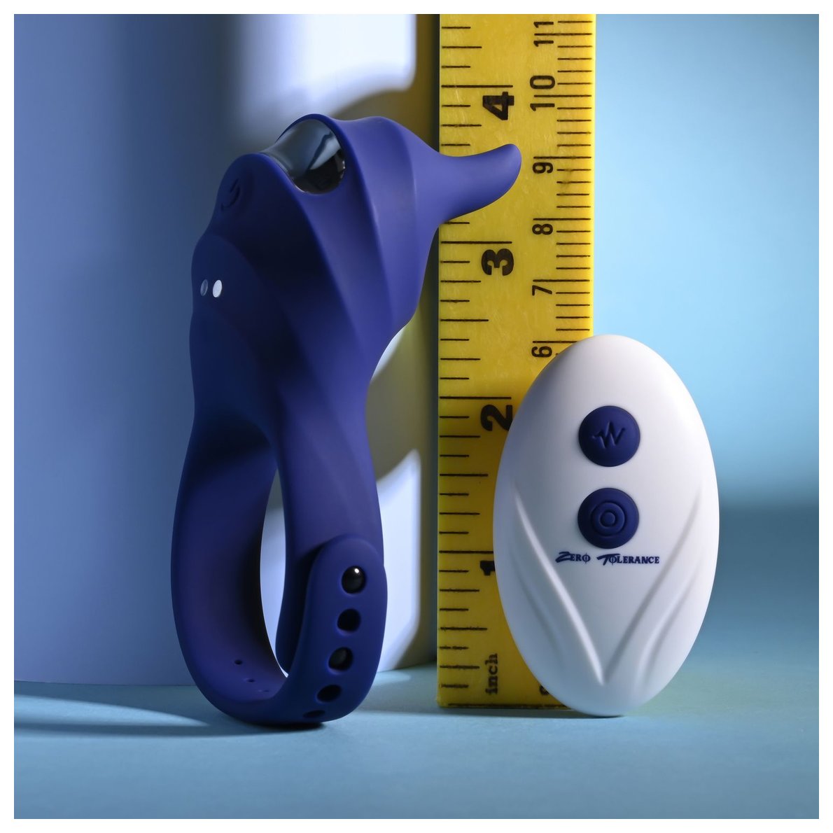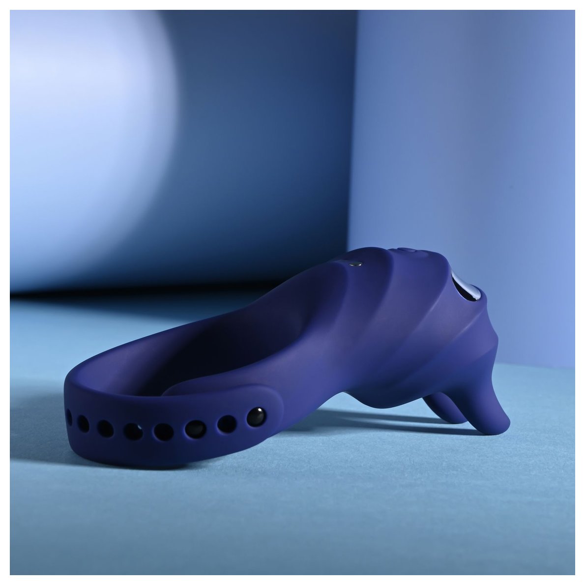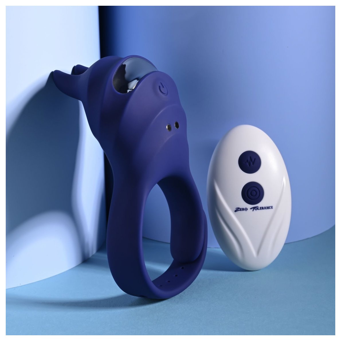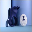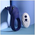 Синее эрекционное виброкольцо с клиторальной подушечкой и пультом ДУ Adjustable Fun Ring