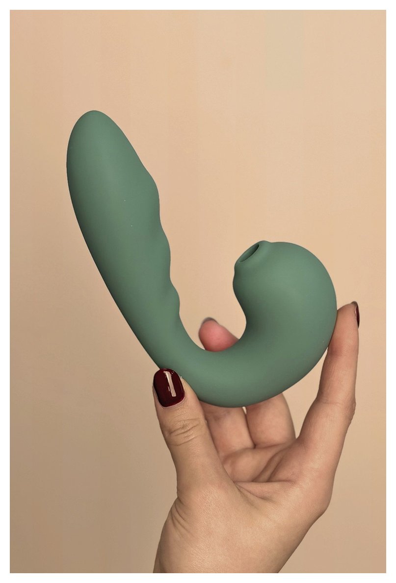 Зеленый вибратор с вакуумной стимуляцией Duo Viro