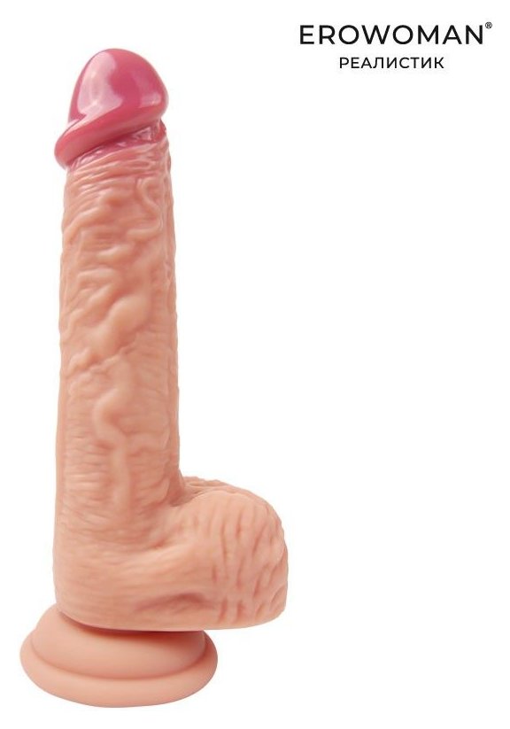 Телесный фаллоимитатор с розовой головкой - 19 см