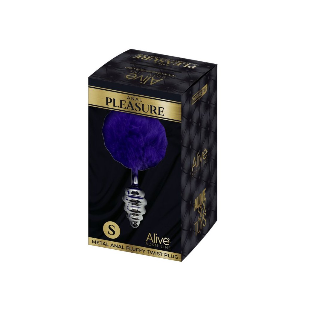 Анальная пробка Metal Anal Fluffly Twist Plug S с фиолетовым хвостиком
