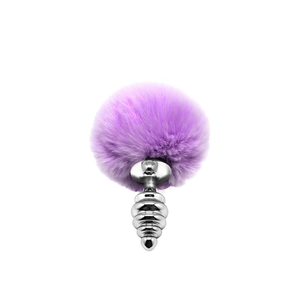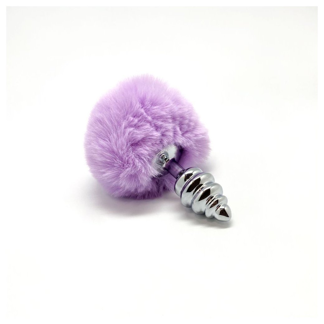 Серебристая анальная пробка с сиреневым помпоном Metal Anal Fluffly Twist Plug S