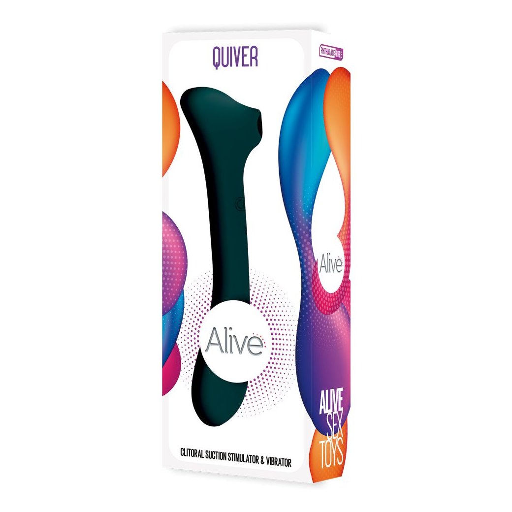Стимулятор клитора Quiver. Изготовлен из силикона и ABS, сочетает всасывание и вибрацию. Два мотора, 10 режимов вибрации и всасывания. Подходит для клитора и точки G. Водонепроницаемость IPX7 позволяет использовать в воде.
