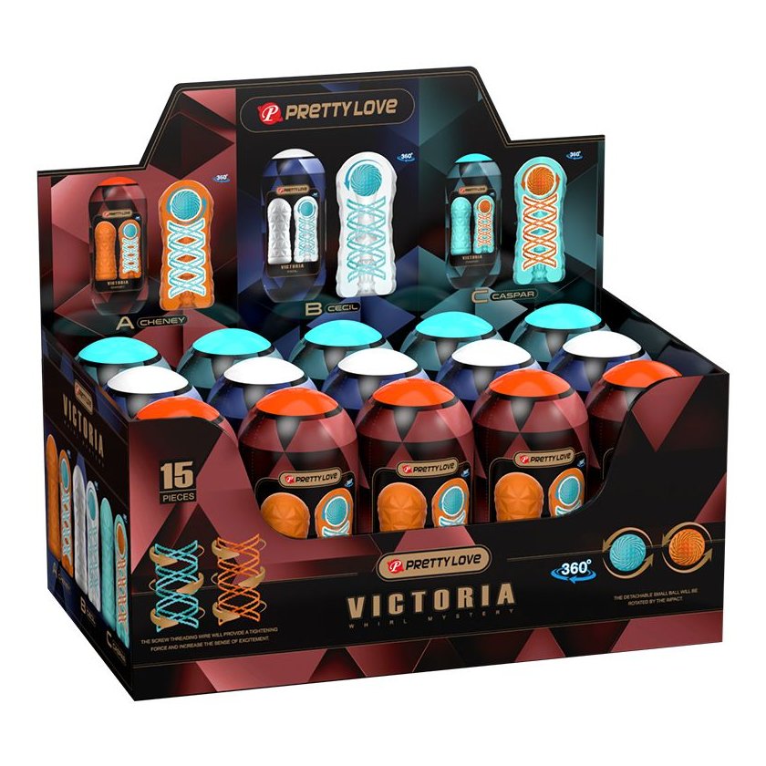 Набор из 15 мастурбаторов Victoria в коробке. В наборе 3 вида мастурбаторов, по 5 штук каждого вида. Мастурбатор в колбе Victoria для ценителей нежных ласк и любителей вагинального секса. Эта секс-игрушка с ребристым тоннелем для стимуляции и мячиком для еще большего возбуждения пениса. Мастурбатор изготовлен из очень нежного на ощупь материала, который придется по вкусу каждому. Кроме того, секс-игрушка этой модели очень удобная в использовании: поверхность покрыта рифленым узором, что позволяет ей не скользить в руке.