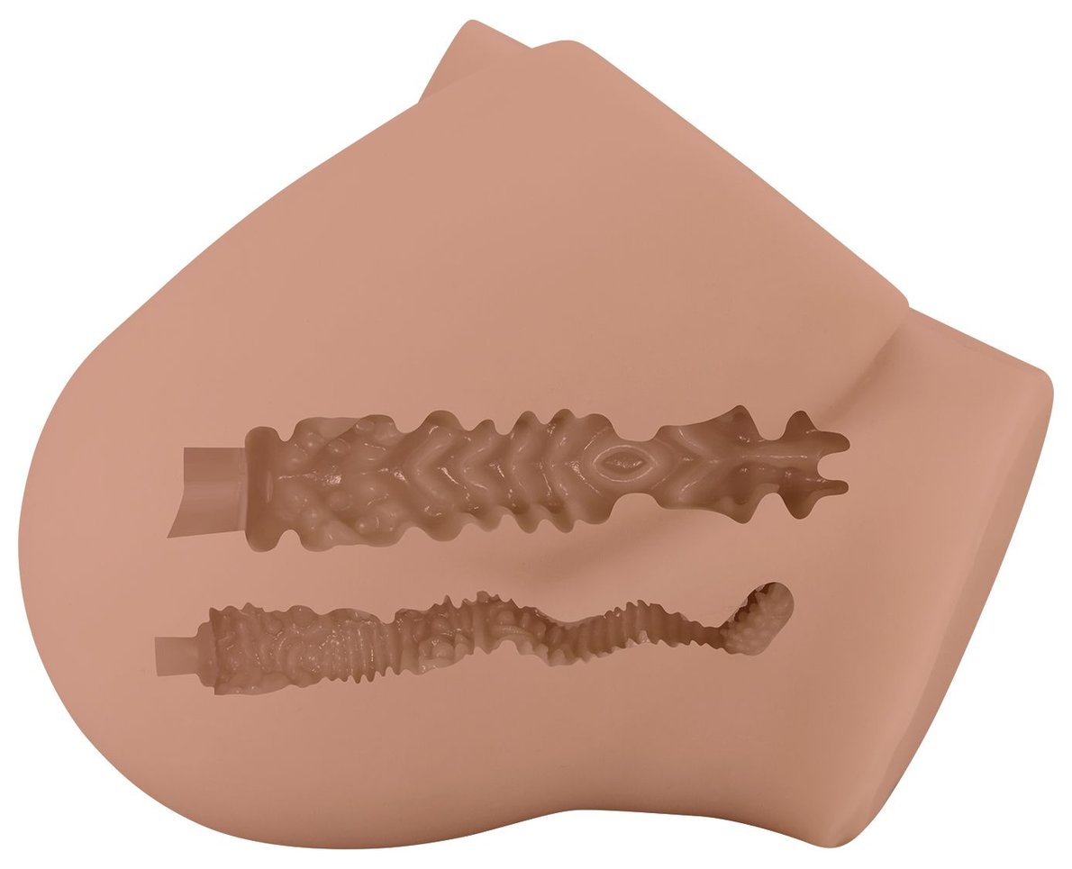 Мастурбатор-полуторс Bernace с вибрацией. Тоннели с ребристой текстурой стимулируют член от основания до головки. Проводной пульт управления.