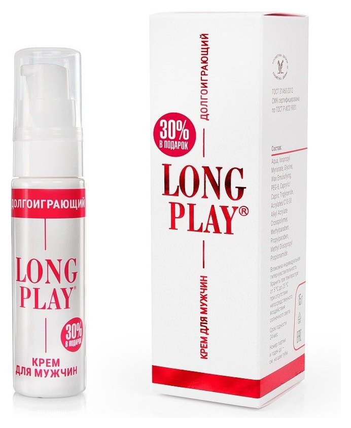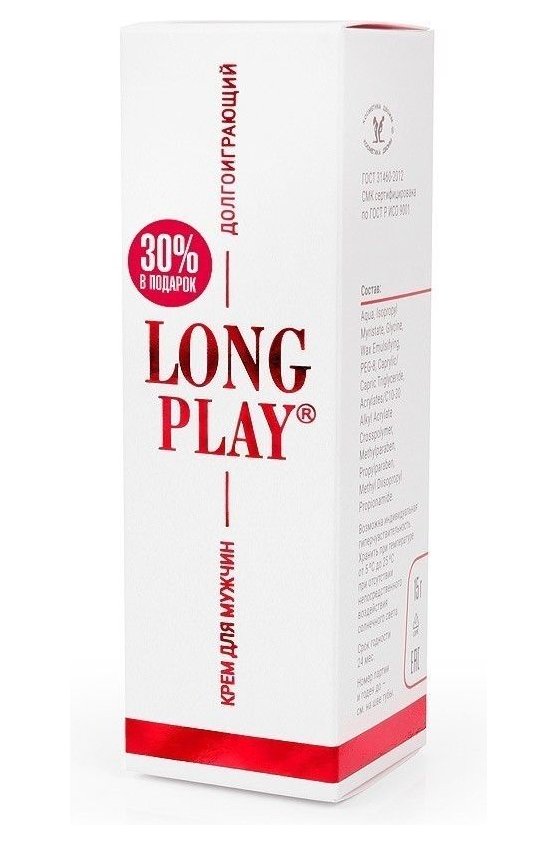 Сексуальные отношения будут такими же долгоиграющими, как и действие от крема Long Play. Средство легко впитывается и быстро понижает чувствительность головки полового члена, благодаря чему появляется сильный пролонгирующий эффект. Дальше дело «техники». Ухаживает за кожей полового члена. Начинает действовать спустя 7-10 минут с момента нанесения.
