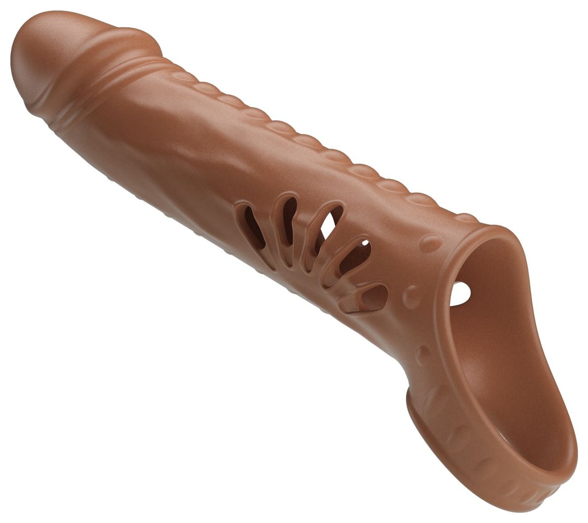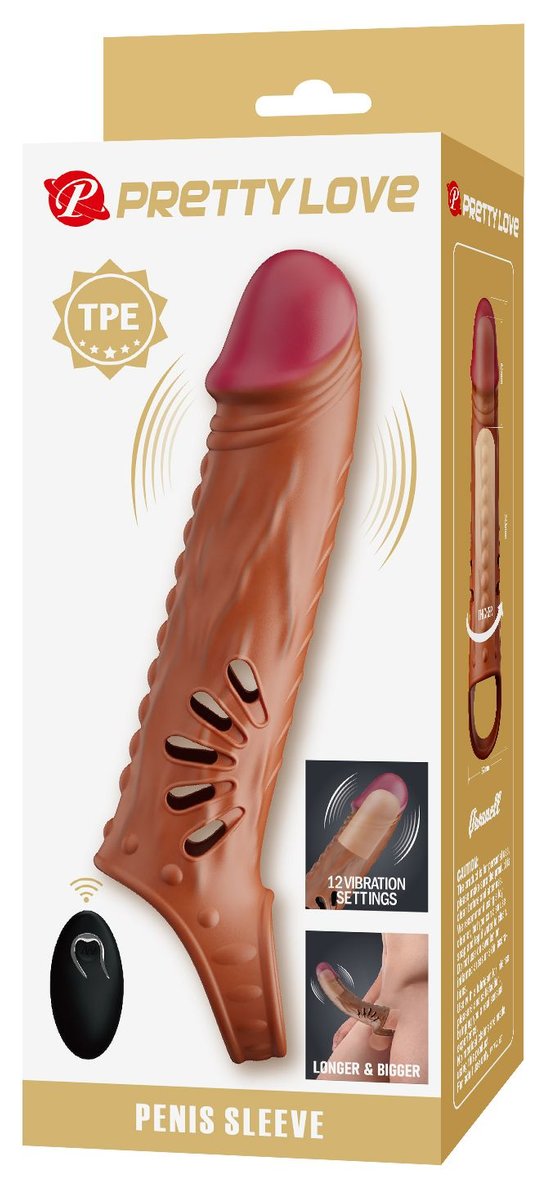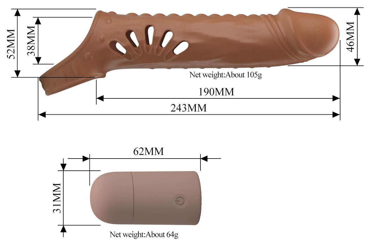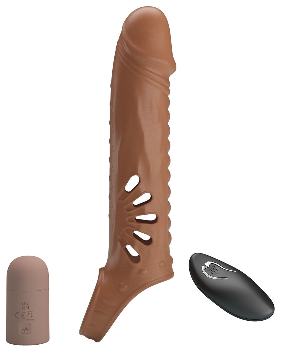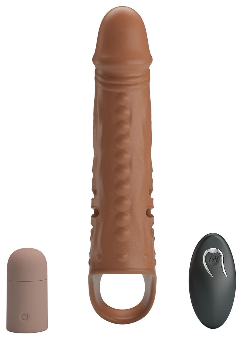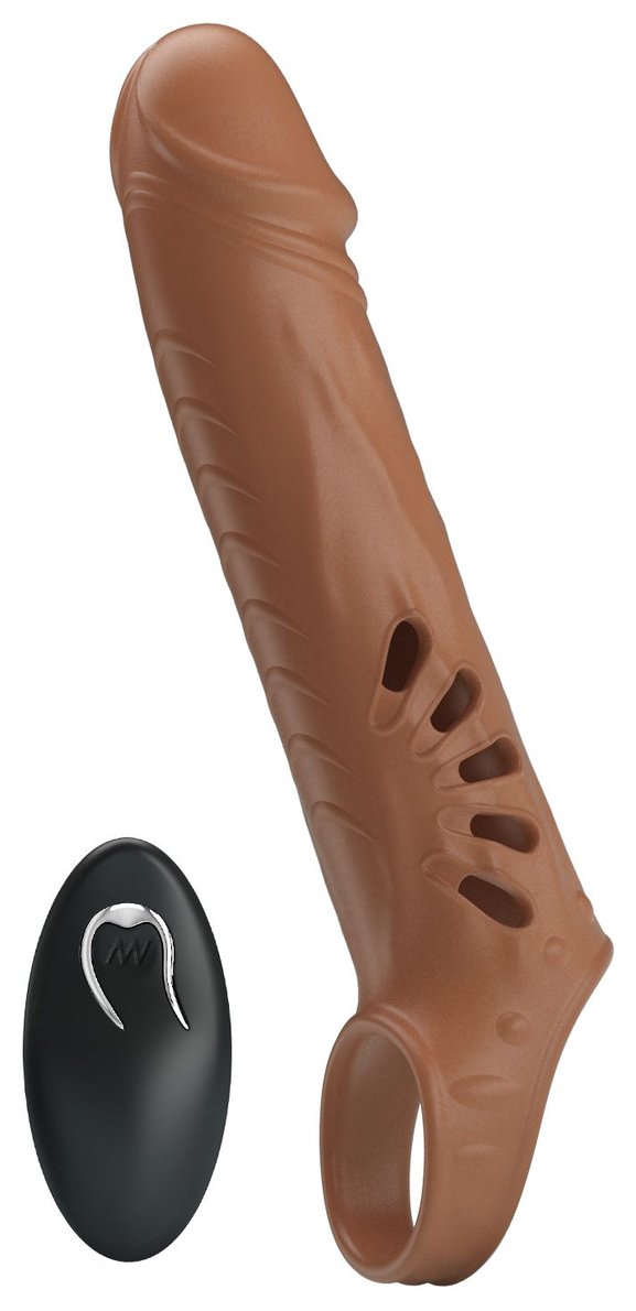 Коричневая вибронасадка с подхватом мошонки и пультом ДУ