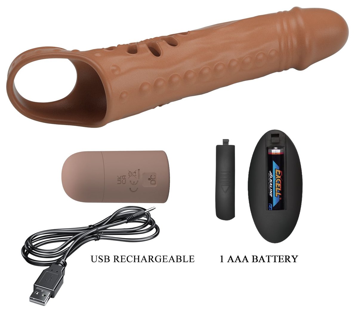 Удлинитель из TPE и силикона с 12 режимами вибрации. Полый корпус и кольцо для фиксации. Управление пультом. Заряжается через USB. Рабочая длина - 19 см. Внутренний диаметр - 3,8 см.