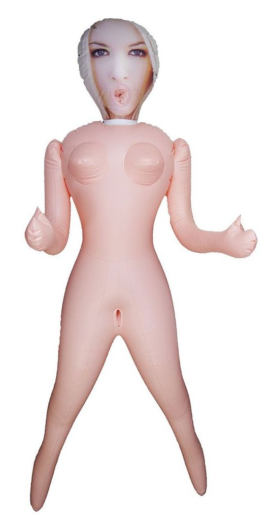 Красивая надувная кукла любви с очаровательным напечатанным лицом и стоячим положением. Она натурального размера, имеет грудь и 3 заманчивые любовные дырочки.