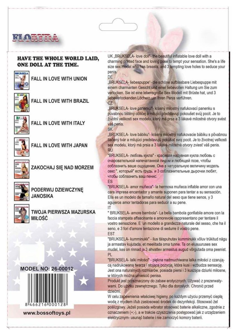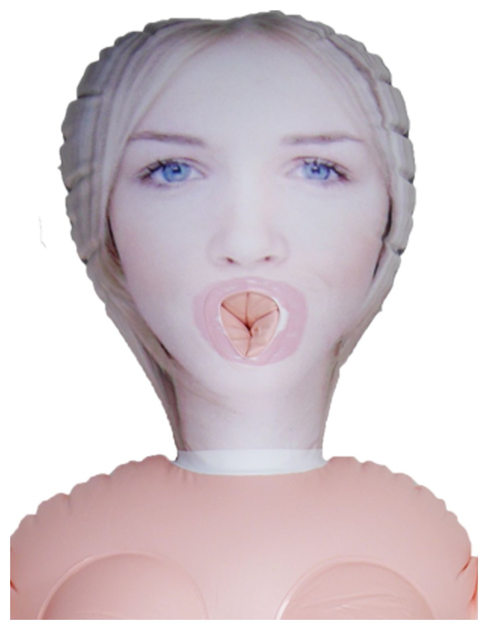 Красивая надувная кукла любви с очаровательным напечатанным лицом и стоячим положением. Она натурального размера, имеет грудь и 3 заманчивые любовные дырочки.
