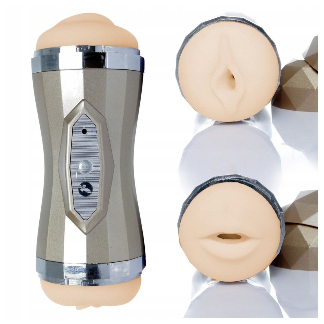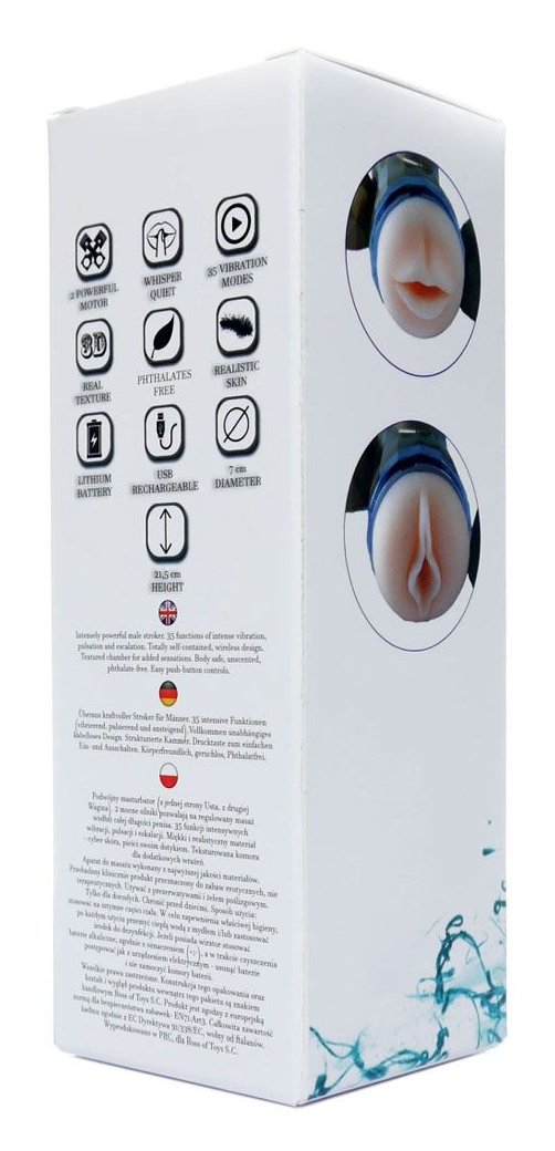 Двусторонний мастурбатор - вагина и ротик - в колбе. 2 мощных двигателя позволяют регулировать массаж по всей длине пениса. Имеет 35 интенсивных функций вибрации, пульсации и стимуляции. Зарядка осуществляется с помощью USB.
